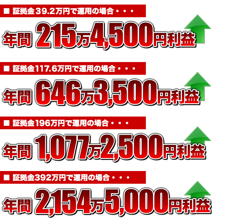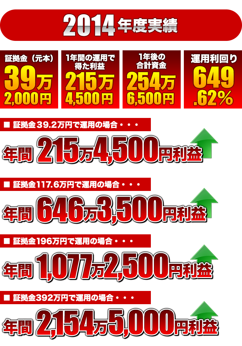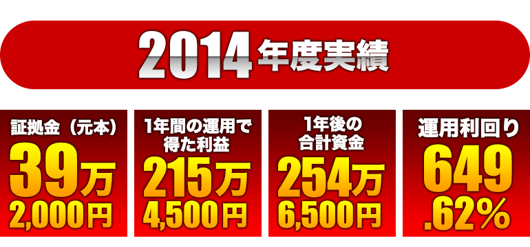 2014年度の実績では、4銘柄それぞれを運用して、39万2000円の証拠金で