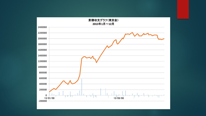 トレンドフォロー型の売買ロジックですので変動率が高いと大きな値幅が取れます。