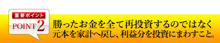 ですから、少ない元手からでも勝ち続けられれば爆発的に資金が増えていきます。