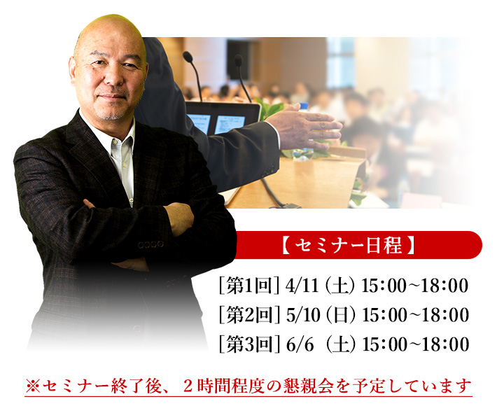 3回のセミナー開催と、6ヶ月間のサポートを予定しています。