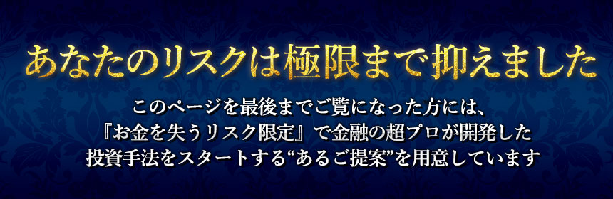 『あなたにリスクは限定的』ということをお伝えしておきます。