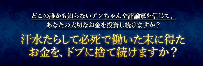 そして、ネット上にあふれる”自称プロレベル”の個人投資家を頼りますか?
