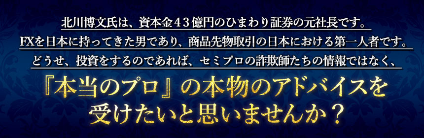本スクールの講師である北川博文は、元ひまわり証券の社長です。