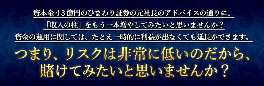 ですが、「一般レベルの知恵で投資するよりも、ひまわり証券の元社長の知恵」を元に